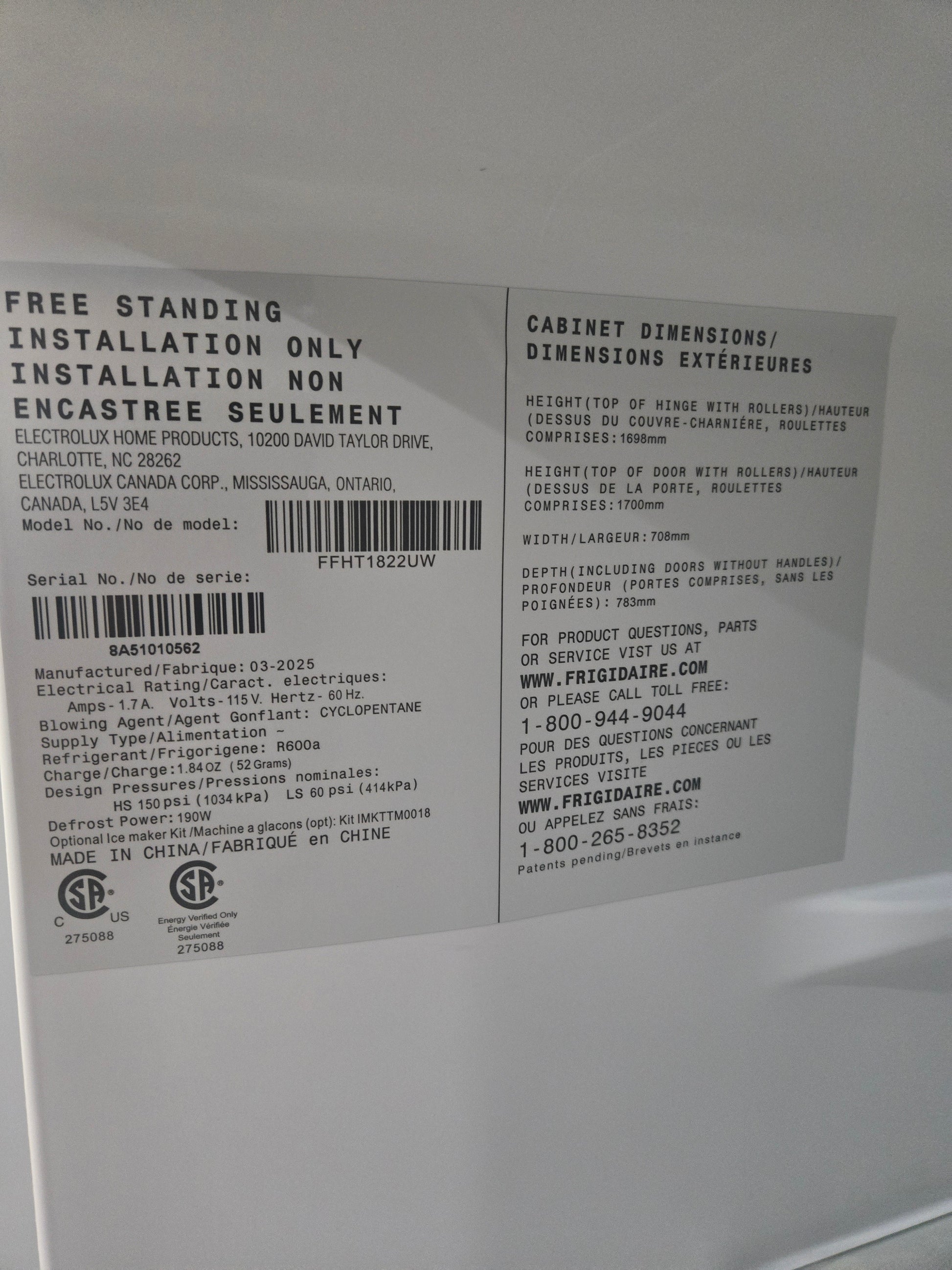 Frigidaire 17.6-cu ft Top-Freezer Refrigerator ( White ) ENERGY STAR Certified Model# FFHT1822UW