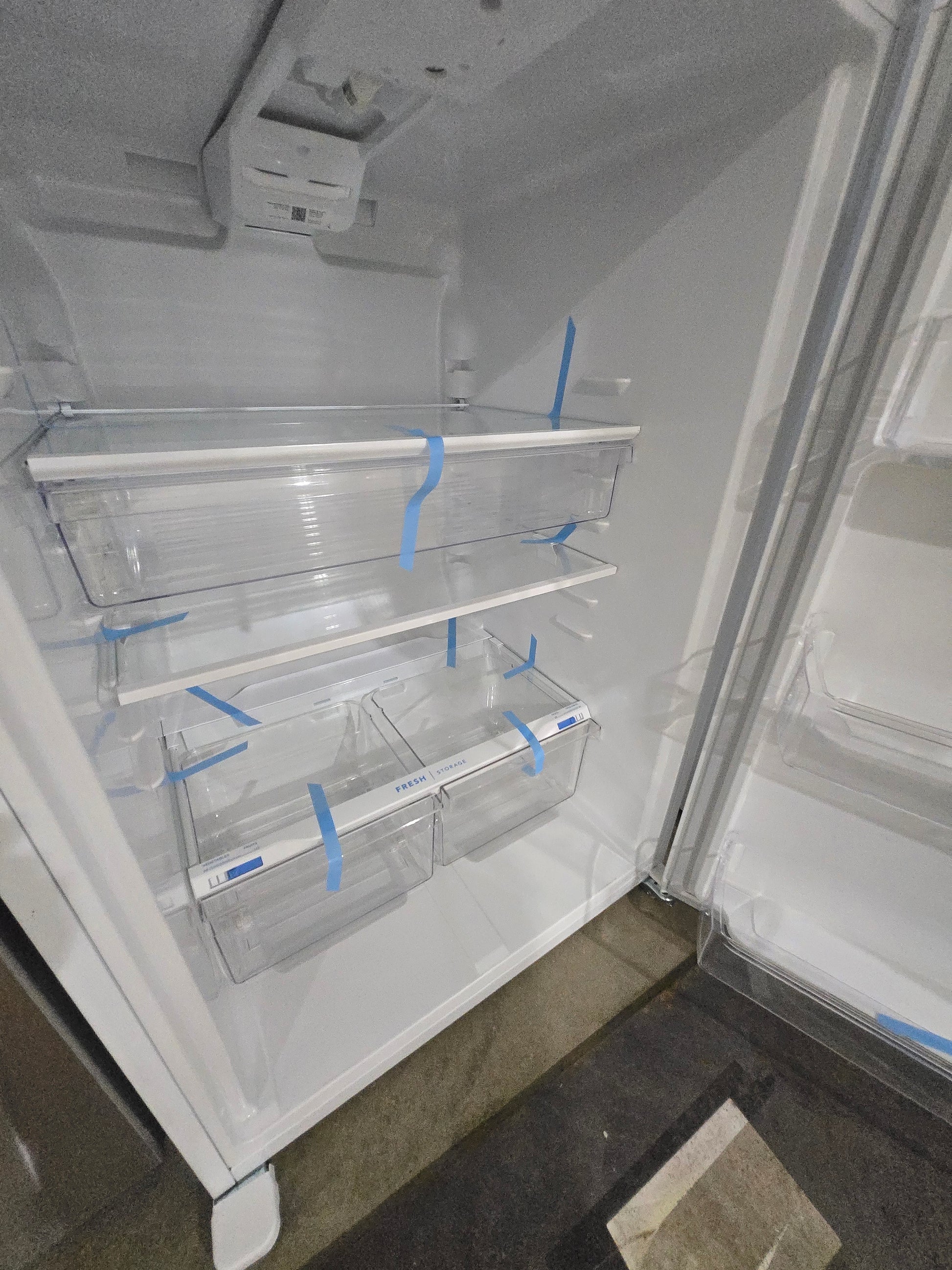 Spacious interior storage including a deli drawer, large door bins, and a glass freezer shelf