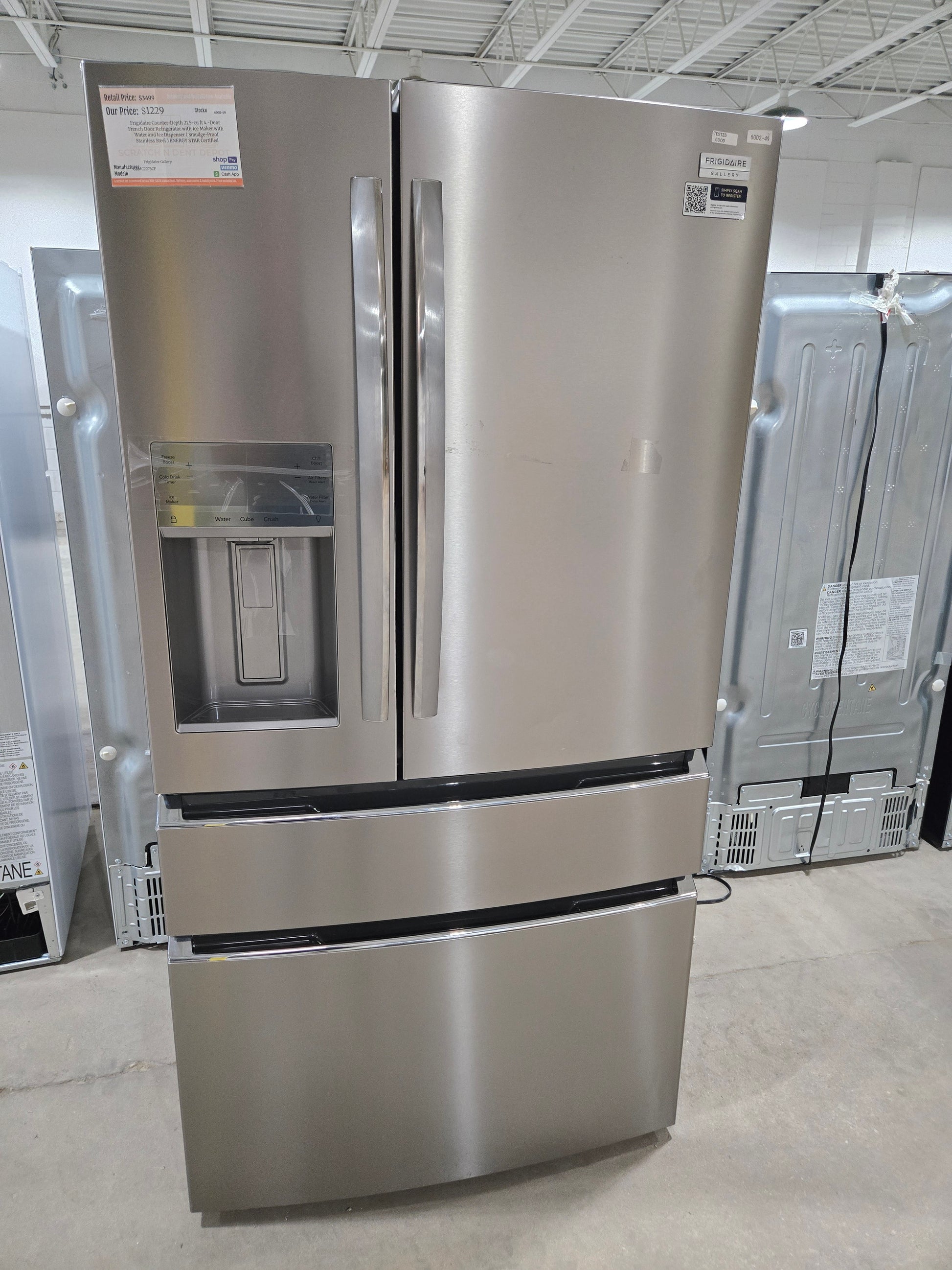 Frigidaire Counter-Depth 21.5-cu ft 4 -Door French Door Refrigerator with Ice Maker with Water and Ice Dispenser ( Smudge-Proof Stainless Steel ) ENERGY STAR Certified Model# GRMC2273CF